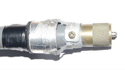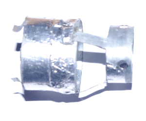 M接栓とエレメントの接続は左図の通りで漏斗型になっているのが亜鉛鋼鈑で作った容量環と言えるもの。CADで書くときれいに出来ているように見えるが実際に作ったものは下の写真にあるように当局のええ加減な性格丸出しになっている。