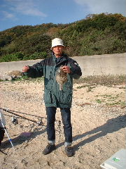 昼からは浜の左に移動して再開、遠投すると良型のキスが釣れた。そのうちにキスとは違う