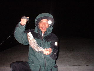に47cmのキビレ、10時頃から竿取りの風が強くなり、白波も立ち始めたので、12時撤収を開始し