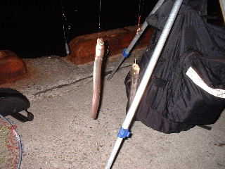 地元のおいやん(?)達が見守る中、第1投、続いてもう1本竿を出した。
