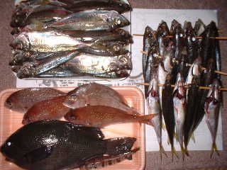 で釣れた60匹のアジのうち50匹とグレ22cm、投げ釣のチャリコ4匹、 24日には近くのスーパーでアジ6匹が298円だった。そうすると60匹で2980円、 まあエサ代にはなった。