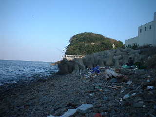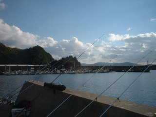 紀北某所狭い釣り場、釣果無し。右手の先端で始めたがキス1匹のみ