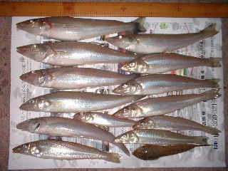 ポツポツ合計13匹。夕方は真虫の小さいのによく掛かってきた。17時頃からまっさんとナカさんのいる