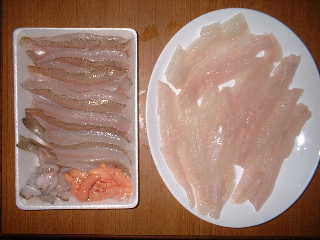 右:左の皿はキスの造り、右のトレーは天ぷら用