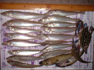 前々週のまつちゃんの送別会釣行と同じところで、同じ釣果、おまけにすぐ横で 人は違うが、ナカさんが27.5センチのキスを釣り上げたのを潮時として終了。