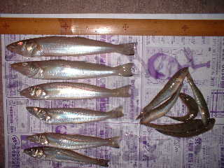 明るくなって出たアタリには小さなハゼがついていた。10時頃まで粘ったが、 暑くなってきたのと潮が底になったので、いっぱい余った餌はお盆の供養にと放流して 下道ルートで帰った。