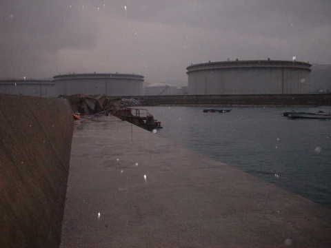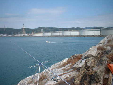 この一文字は初島港外右の東燃防波堤とテトラで繋がっていた。もう一つ港外左の