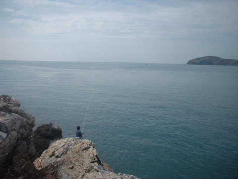 11時頃になって雨もやみ日が差してきた。海面も穏やかになって、