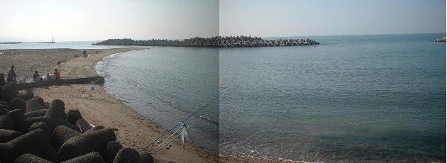 先客が先端付近に見えるだけで、網干し場には誰も居ない。潮は満潮から引き加減。