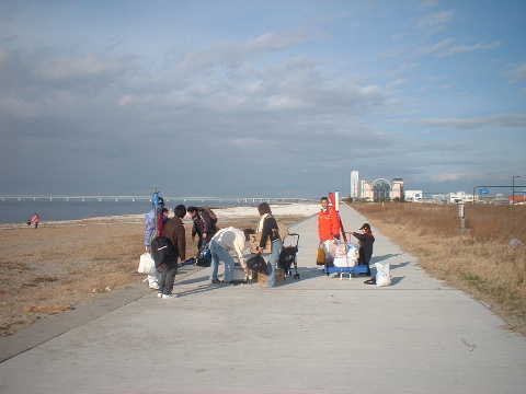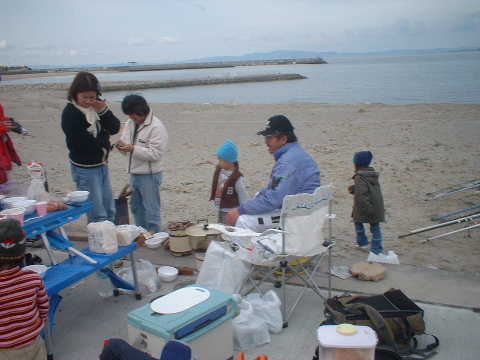 2月27日外道キャスターズ恒例の第4回キャスティング大会が、樽井のサザンビーチで行われた。 一人づつキャスティングしている間、すぐ横では鍋・焼肉・バーベキューの宴会。 15号25号の錘をと投げてみたが、15号の練習なしぶっつけ本番は調子がわからずライナーで 80m?、25号で道糸3号でも1.5号でも100m。結局練習で投げた120mが最長だった。 ピンポイント競技は、80mは本命のムラさんが2位で1位はyo-san、100mはダントツでナカさんだった。 天気が良くて気持ちの良い一日でした。