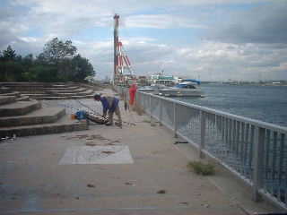 人工島の水路に移動した。この頃から天気予報どおり、北西の風が強くなってきた。