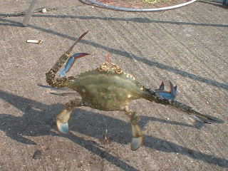 7時頃に何の反応も無く、重い重いワタリガニが釣れた。甲羅の後ろから手で持ったところ甲羅