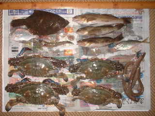 大合わせを入れて、引き上げると、重い!時々下へ潜るような反応があり、期待したが、またワタリガニ。