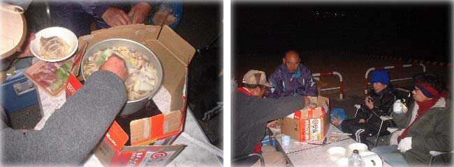 波止があるような場所は無かった。池田港のフェリー乗り場でとにかく食事をしようと、うどんすきを始めると