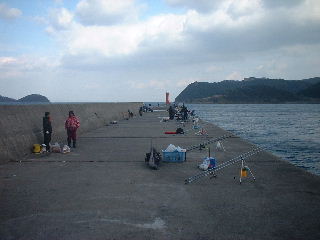 大波止根元に着いた。既に、yo-san、ムラさん、と久しぶりのハコさんが内向きに竿をだしていた。