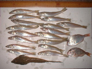 そこで竿2本を置き竿にして、時々交互に巻き上げるようにするとボチボチ釣れるようになった。
