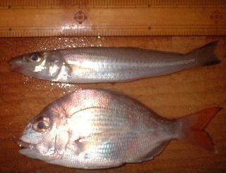 竿出しできる場所が無く、8日早朝まつちゃんと大川の道の横から投げてみたが、釣れるのはイソベラばかり、