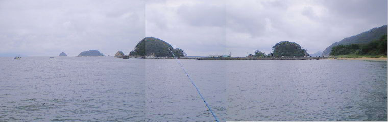 小橋方面に偵察に行ったY氏より、浜から伸びた波止で、ピンなら釣れると連絡があり、移動した。