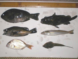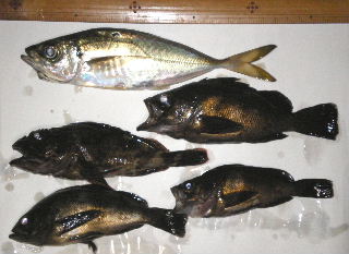 結局、ガシラ、グレの20cm、メバル16cm、延長戦は投げ釣りで、深日港に転進。