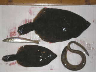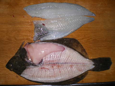 翌日、刺身にするために捌いたカレイ。白子がたっぷりで、旨かったが、