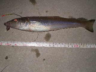 など、外道のオンパレード。そんな中24時前にはっきりとしたアタリがあり、キス24㎝が釣れた。