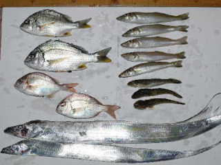 キスがポツポツと釣れた。前週よりも涼しく、明け方は防寒着でないと寒かった。それでも8時過ぎには