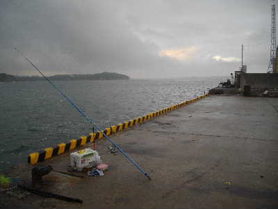 うす暗くなるまでに、2~3匹釣ったが、もう一つ。と言ってこのうねりでは湾内しか釣りに