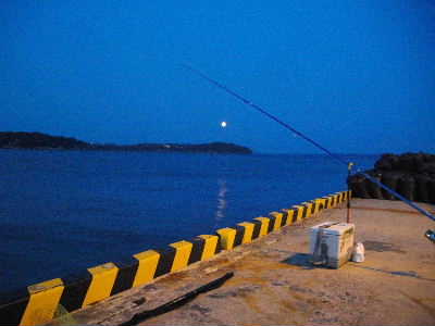 ブイが浮いている。日が暮れても気温が下がらず、蒸し暑い中竿を出した。