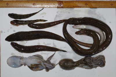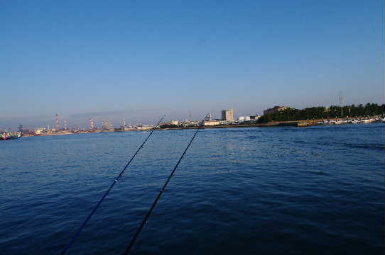 コーナーで竿2本を用意した。早速アナゴが釣れたが、他には何も来ない。明るくなって、