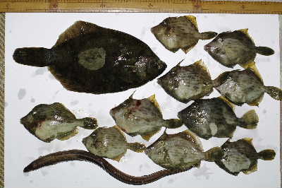 A松師匠、M山さんの釣ったのも入れて、2桁になった時点で納竿となり、ハゲ全部を頂いて新浜デブー
