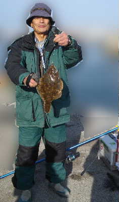 すっぽ抜けるな!と引き上げた。今シーズンの初カレイは33㎝でした。
