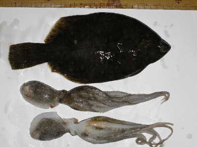 先週もそうだが、潮が流れ出す前の潮止まりにカレイが当たるようで、その後はタコ1匹のみ。