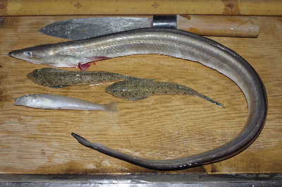 ると、長いので白アナゴ?と思ったがとがった口先に鋭い歯がある鱧だった。