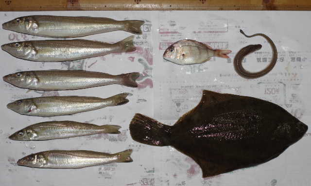 のおいやんがやって来て、良型のキスが出ると聞いて来たとのこと。カレイは狙いでは無さ