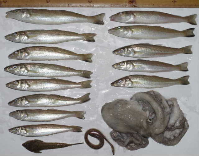 潮がそこそこ上がってくるまで、キスは海側に留まっていたようだ。他にはタコ1匹。