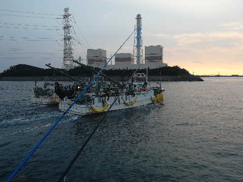小さなアタリがあり、最初はフグ、次にトラハゼ、チャリコさらにネンブツダイ。18:00頃に漁船が出漁