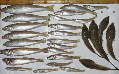 明るくなってから時々アタリがあり、キス、テンコチが釣れだすが、全体に小さい。またテンコチが