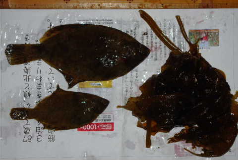 07:00頃にごく小さなアタリで、16cmの可愛いカレイが釣れ、10:00頃にワカメを釣った後、全く