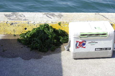 15分ほどして、引き上げると大量の海藻(アオサ)が付いてくる。そのうち無くなるだろうとかまわずに