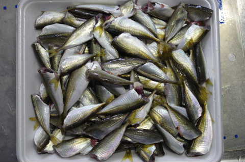 引き返してマリーナシティーで1時間ほど竿出ししたのだが、全く反応がなく11:00頃納竿。涼しい風が吹く中、少し仮眠して12時頃帰路に就いた。15:30頃帰宅し、すぐに豆アジの頭と腹を出す下処理を済ました。