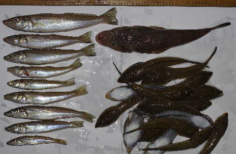 中津浜浦は波止上に誰も居ない。14:00頃なのでカンカン照りで当然なのだが風も右斜め後ろからの強風で釣り辛い。しかし何らかのアタリが有り上がってきたのはチャリコにテンコチ。派手な当たりの割りに小さいのでほとんどお帰り願ったが、キスの追加は1匹のみ。16:00頃から日陰になった浜に移動するもテンコチばかりで、たまにヒイラギやフグ。17:45納竿。テンコチは食べられそうな物だけ持って帰りったのだが数が多くなってしまった。塩でぬめりを取り、頭を落とし、背骨を取ってから皮を剥いで身だけにして玉ねぎと掻揚風にして美味しく頂きました。
