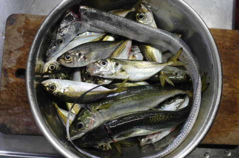 着いて直ぐから、遠投の飛ばし浮で少し大きくなったアジが釣れるが、釣果は隣のオジサンの半分以下。その隣ではサビキに45cmのチヌが掛かりタモで掬ってあげた。その善行に釣りの神様の恩恵を期待したが、そんなのは一切無く、夕マヅメ時には太刀魚のアタリが頻繁に出たが、乗ったのは1匹だけ。忙しい割に釣果は上がらず、ほんの一時が過ぎると全くアタリも無くなり23時撤収。