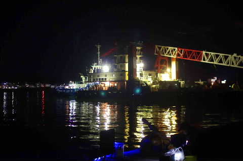 港には大きな作業船が入っていてその外側に陣取った、とすぐに県職員がやってきて、例の如く