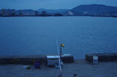 ゴールデンタイムになってもサビキ、太刀魚ともに全くアタリが無く時間だけが過ぎて行く。太刀魚は20時頃までにムラさんにアタリが出て2匹(?)確保した模様。そのムラさん達が撤収した後、雨が降り出し22時を過ぎた頃にアタリが出だした。0時前までに5回アタリが有ったが、喰いが渋いのか仕掛けが悪いのか全く乗らない。日付が変わってアタリも無くなりそのまま撤収となった。