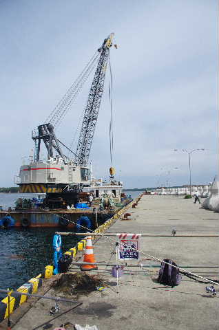 クレーン船はテトラポット40個程積んで、この日は作業終了のようだ。