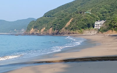 5月に釣りした宿田曽浦の様子を見て到着は03:30頃。仮眠の後浜へ下りたのは5時頃。潮は引きに入っていて、波も思ったほど高くない。