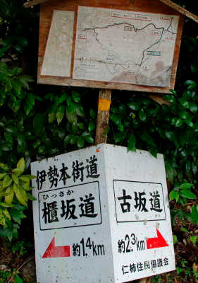 18時頃に帰れば良いので、遠回りにはなるが久しぶりに本伊勢街道を通ってみようと、R368を西進、仁柿峠の杉林はまだ林道のようで、相当の高さ(430m)まで登りきって左の写真の表示が出て道が良くなる。御杖村でR369に入り榛原を通って広域林道、田原から市内に戻った。