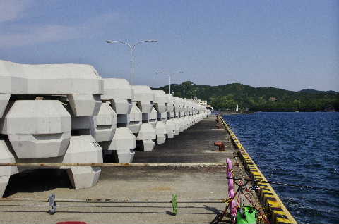 11日22:00過ぎに出発し、加茂からR163、伊賀長野峠を超えて下道ばかりで玉城IC入り口のコンビニで、忘れたヘッドライトの代わりに使うライトの単三電池4本を買う。2本で420円はビックリする価格だったが仕方なく4本とすぐ横のエサ屋で青と石ゴカイを仕入れ浜島に向かう。到着は02:15頃何時もの広大な岸壁は真ん中がテトラ工場になってるようで両端に5~6mの空きが有るだけ。各2人づつ計4人が精いっぱいで何とか一番外側に入れた。他の3人は全てイカ師のよう。