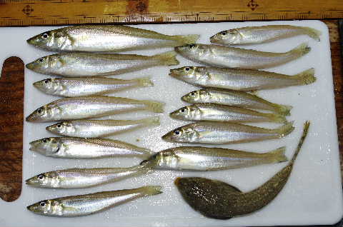 ソコソコ粘ってみたが強風をもろに受け治まる気配もなく、またアタリもないので風が少しは緩い元の浜に戻った。少しマシな15cm程の1匹を追加しただけで、0時頃からムラさんの娘さんが明け方にやってくる都志へ移動する事となった。