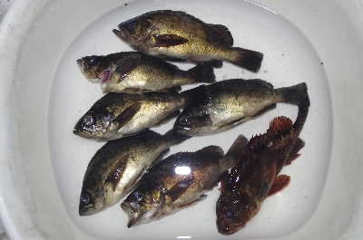 暗くなってからポツポツとアタリが出て穴ハゼやミニガシラ、磯ベラが釣れた。磯ベラ以外は野良猫に与えてから小メバルが釣れ、ダボさんがデカメバル、ムラさんがハネを釣りた。23:30頃納竿。ガシラ、メバル2はムラさんから貰ったもの。久しぶりにウキが沈むのが見られて良かった。